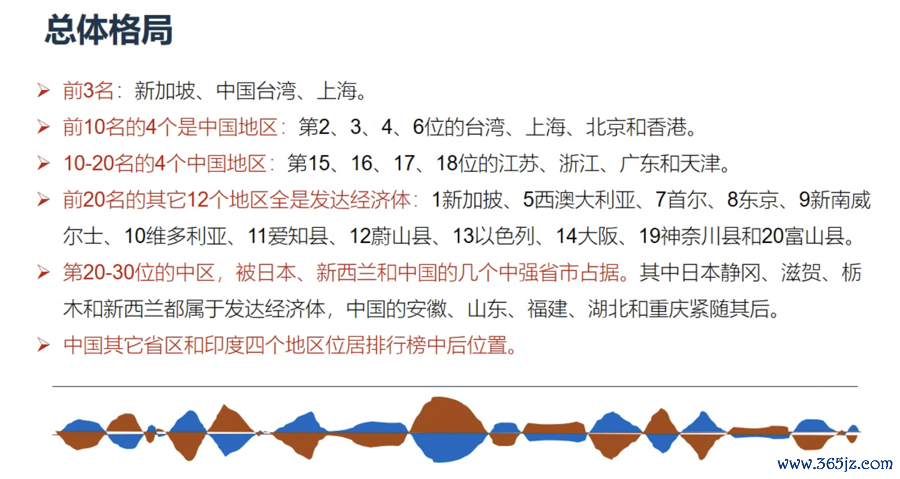 跳跃第三快的是台湾地区,从昨年的第7跃居本年的第2,高涨了5位,从而超越了上海和北京。台湾地区跳跃的能源主要开头于增长显赫的IT和电子机械部门的功绩密度以及功绩出产率的显赫增长。