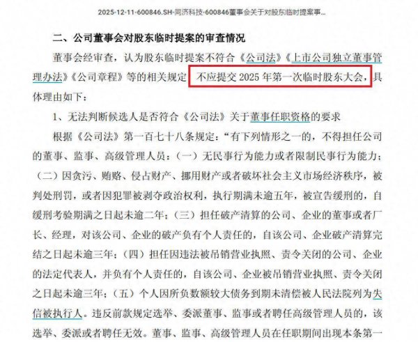 可是,同济科技董事会以“未提交齐备候选东说念主良友”“不利于转型期运营畅达性”等为由,不将该提案提交股东大会审议。